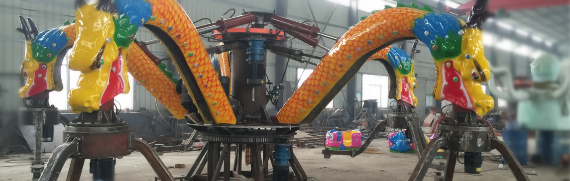 新型大章鱼游乐设备,因外观为张牙舞爪的章鱼形状而命名,下方有5个大臂,有中国龙造型或简约的方形,龙型大臂龙头处含着一颗火龙珠,龙珠连着3/4个卡通鱼座舱,随着音乐的节拍,章鱼的触角上下舞动,座舱随着龙头的起伏倾斜旋转,仿佛一群鱼在海洋世界里自由游荡,趣味连连。